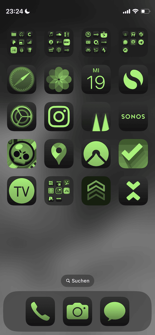 Inspiriert von der neuen iPhone 16e Werbung hab ich meinen Homescreen für nachts mal angepasst. Ohne Beschriftung find ich gut, aber Icons größer sieht etwas plump aus.