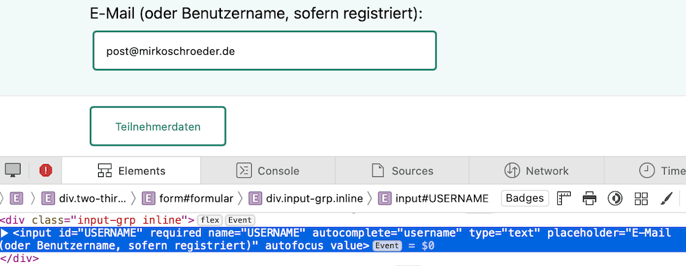 Das viel zu kleine Logo oben - geschenkt. Viel zu kleine Schrift im form (11px), und natürlich darf der Klassiker nicht fehlen: type=text für ein Emailfeld. Da brauchste mit Barrierefreiheit gar nicht erst anfangen.