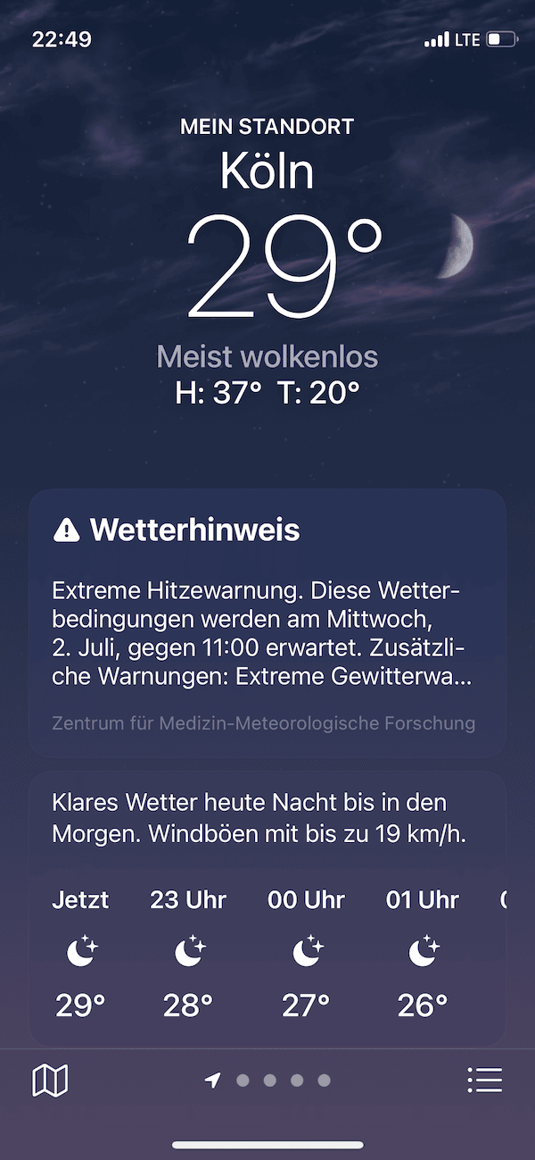 Eigentlich heisst das Lied ja "36 Grad", egal. Es tropft an allen Ecken und Enden. Gestern abend am Rhein: 29 Grad.