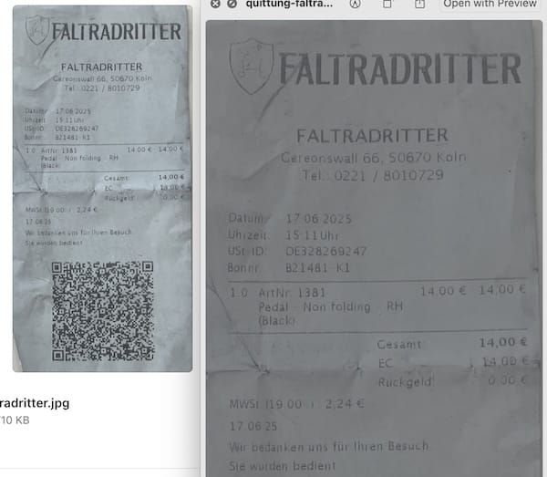 Links die Ansicht der Vorschau im Finderfenster, rechts Vorschau mit Quicklook.