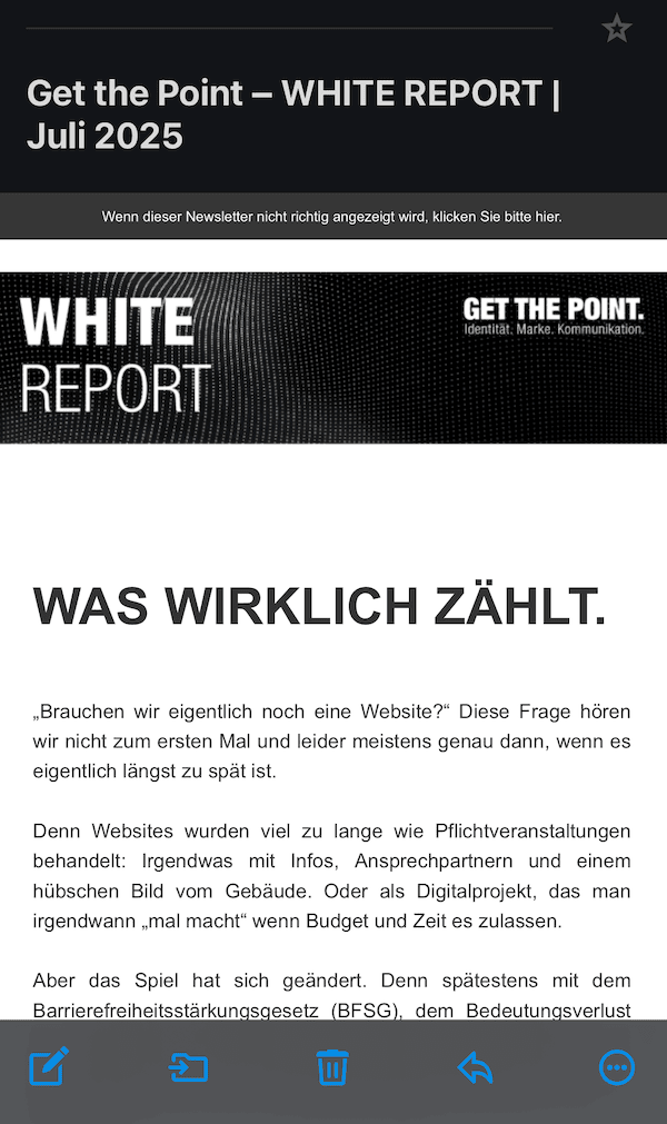 Klar, das wurde mit irgendeinem Kack-System zusammengeklickt. Aber 7x table in table und mobil möchte (kann) man das gar nicht mehr lesen?! Gilt das BFSG eigentlich auch für Emails?