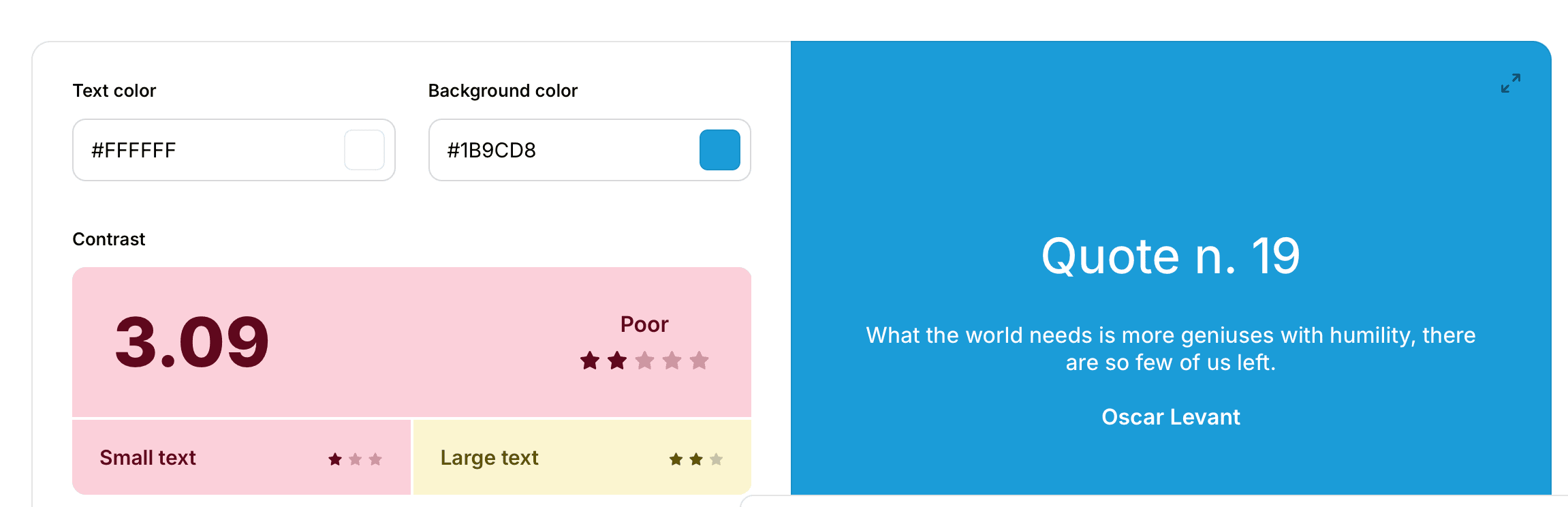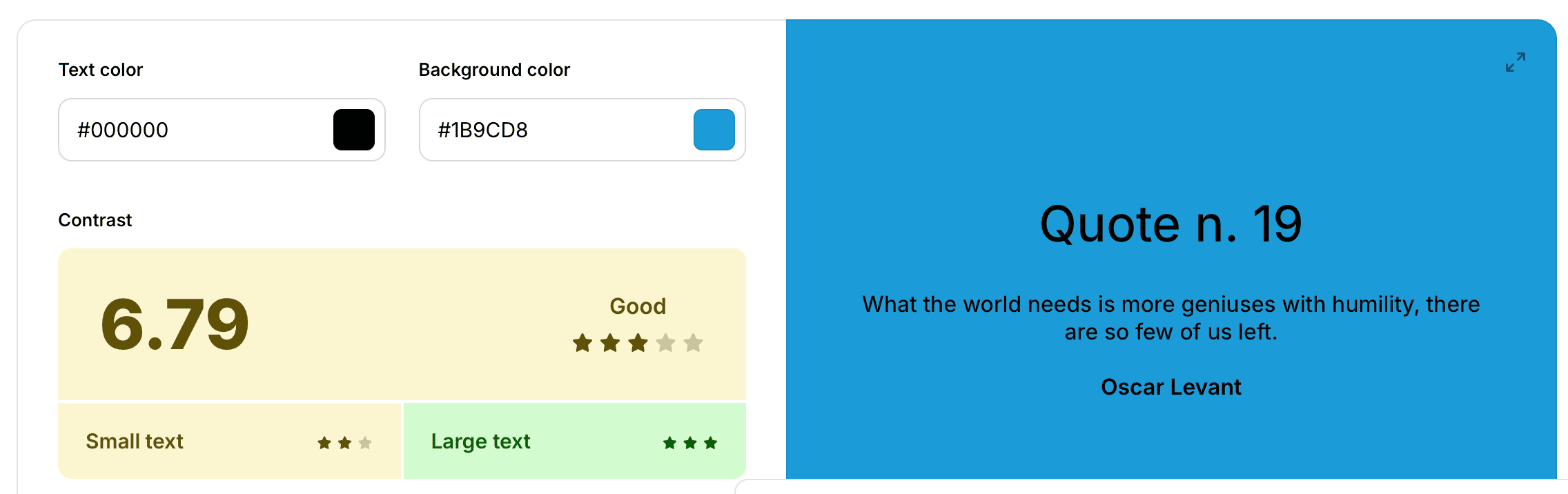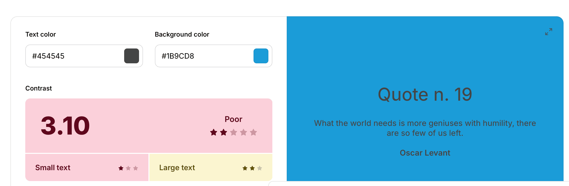 Der Kontrast wird in Zahlen gemessen und ist ganz klar definiert. Visuell sieht das allerdings nicht ganz so klar aus. Gecheckt bei coolors.co