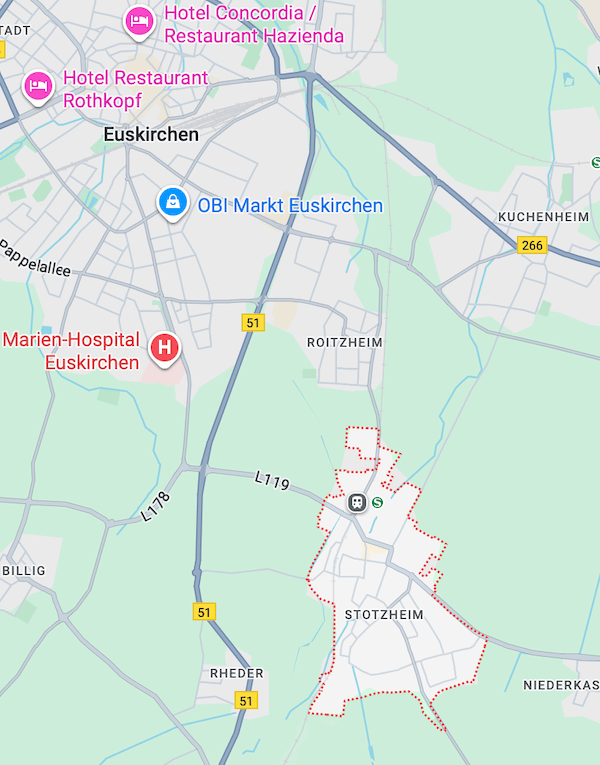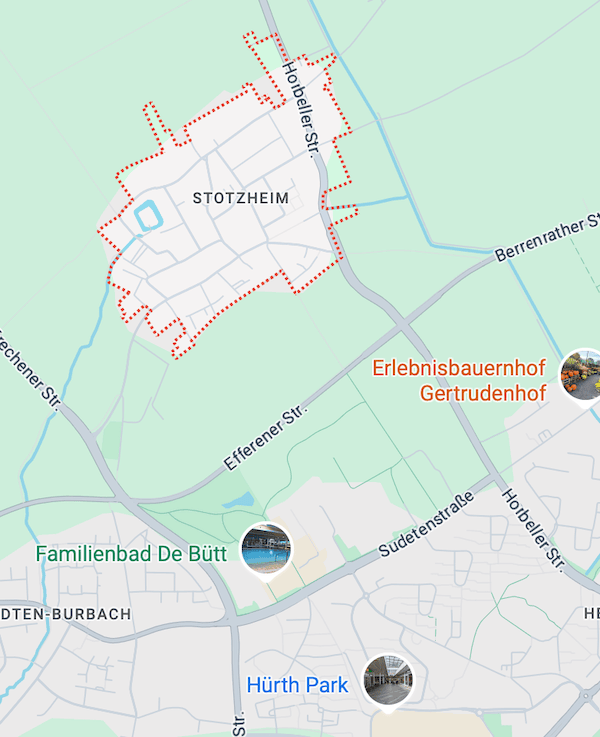 Stotzheim, 50354 Hürth. Die Auto Fahrradbahn, wenn man Richtung Süden ins Grüne fährt. 40 Kilometer weiter gibt es aber noch ein Stotzheim, nämlich 53881 Euskirchen. Ein Versehen? Zufall?