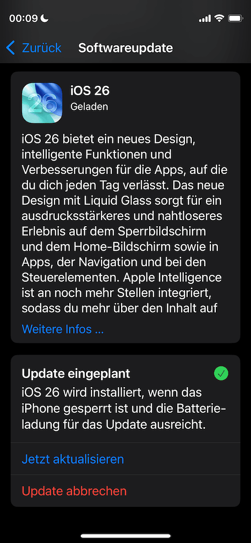 iOS 26 wird installiert ...