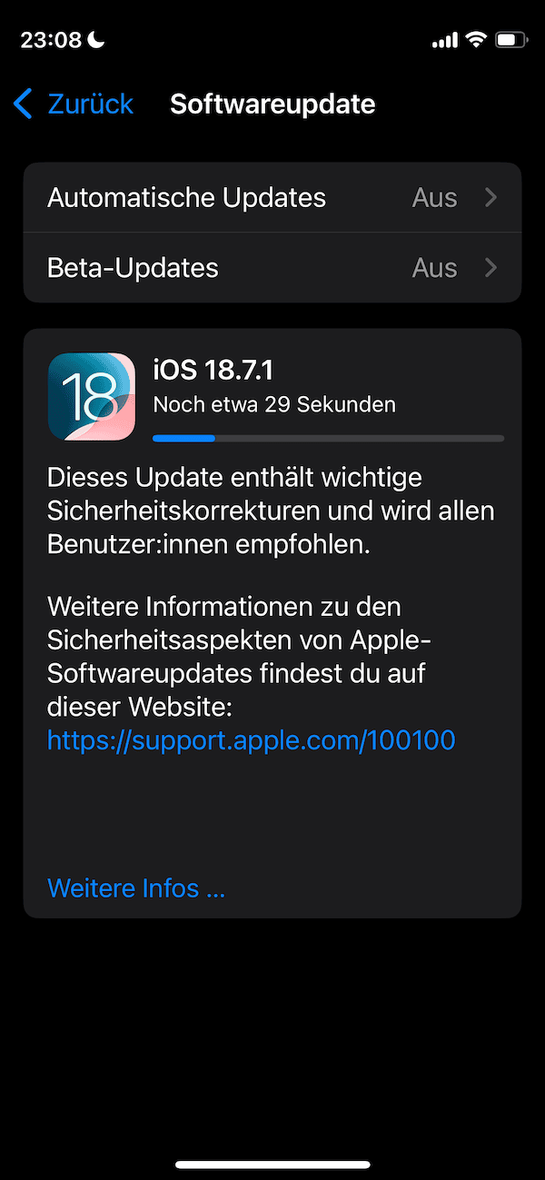Heute nacht ge-updated. iOS 26 bleibt mir weiterhin erstmal aussen vor.