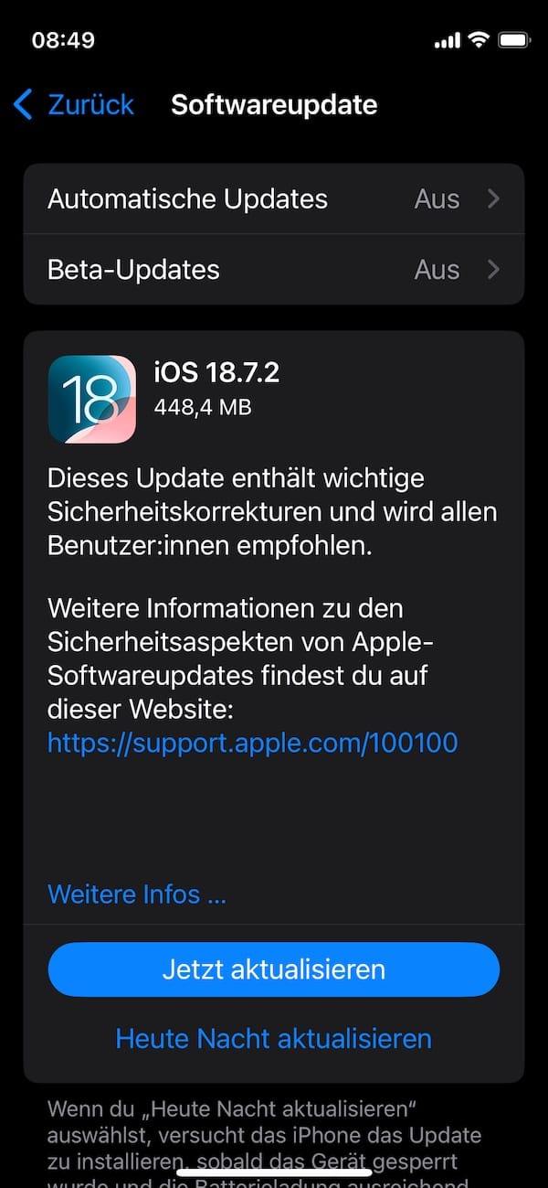 Immernoch kein iOS 26. Irgendwie will ich das auch dem iPhone 12 mini auch nicht haben, da ist die Sorge vor Performance Einbußen zu groß.