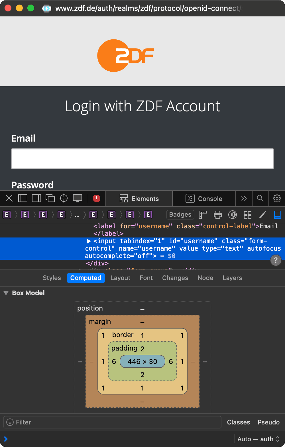 ZDF Login ohne type=email