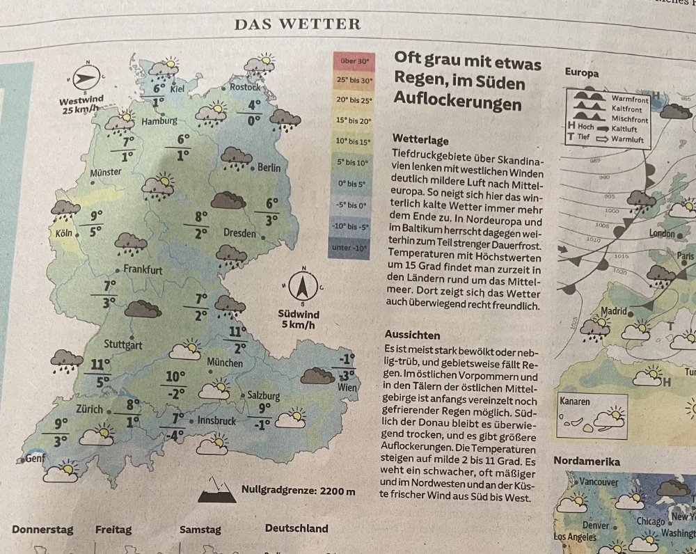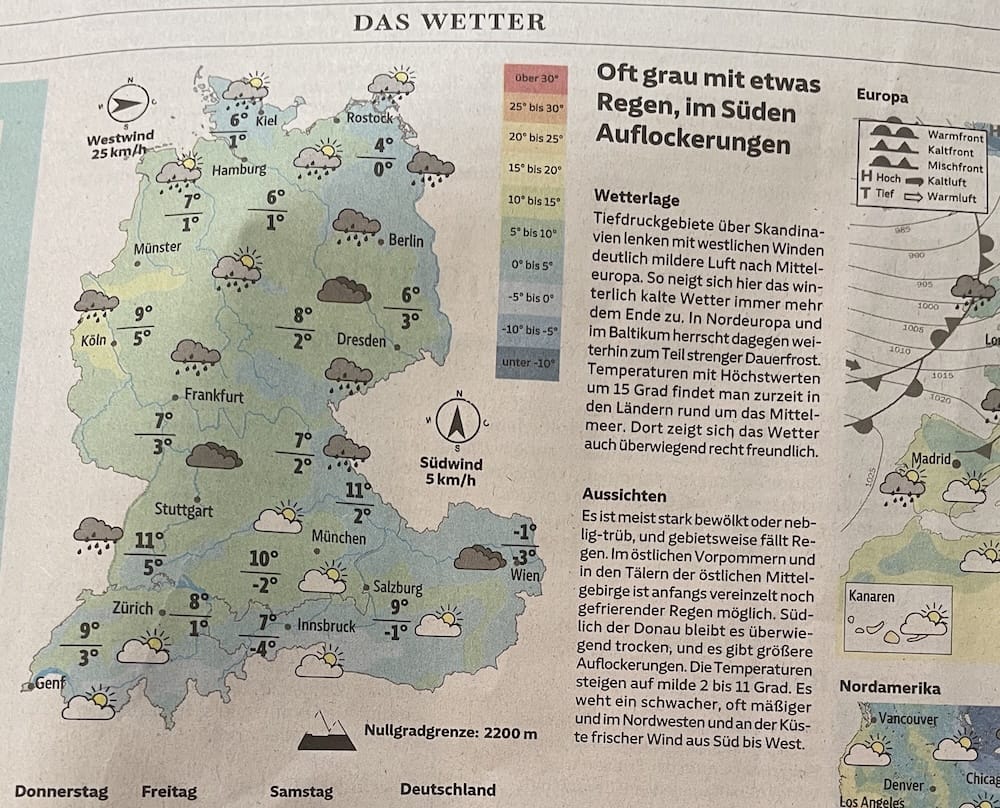 Wetterbericht in der Zeitung