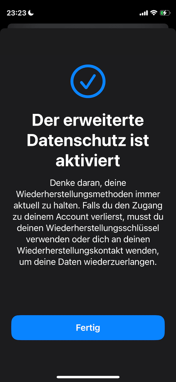 Heute aus einem youtube gelernt, das der erweiterte Datenschutz ‚Ende-zu-Ende‘ Verschlüsselung bedeutet. Wobei: eigentlich wusste ich das schon, hab es aber damals™ nicht aktiviert, weil dafür alle Apple Geräte dieser Apple ID einen bestimmten Software Stand brauchen, und der alte iMac und das auch in die Jahre gekommene iPad können das nicht mehr. Muss ich also aus meinem Gerätepark entfernen …